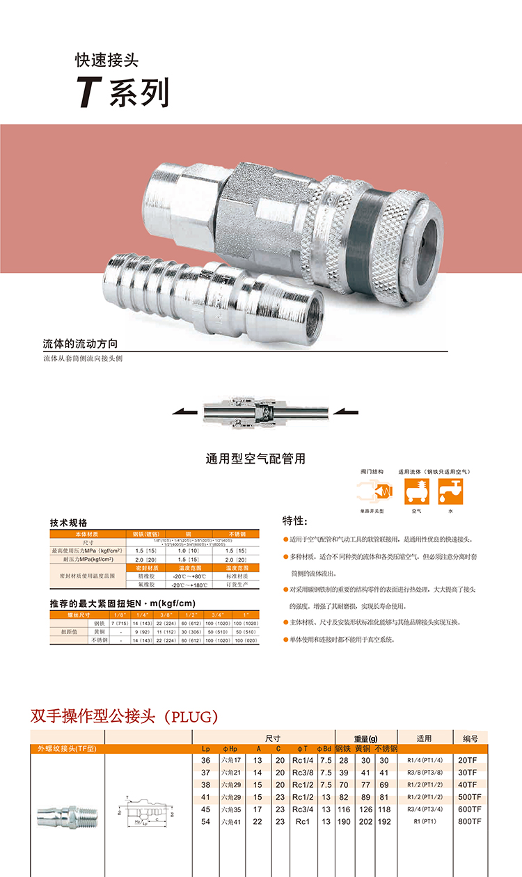 T系列外螺纹公接头TF型亚洲标准日式气动快速接头