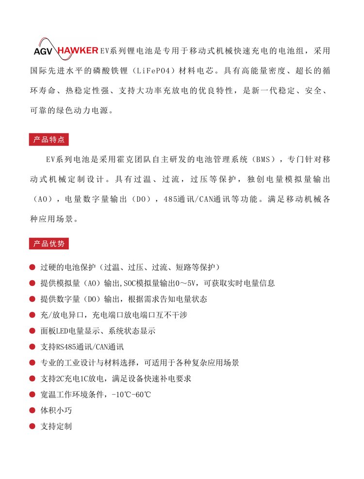 霍克锂电池EV24-60/24V60AH磷酸铁锂电池组AGVHAWKER 品牌 | AGVHAWKER | ||