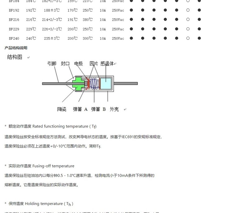 配套使用/相关产品 | 温度保险丝电子元器件 | ||