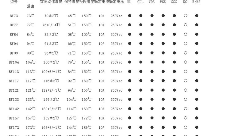 保险丝类型 | 温度保险丝 | ||