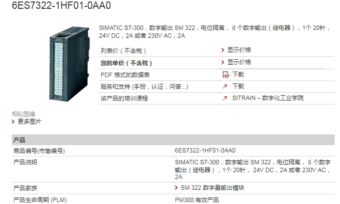 西门子PLC 6ES7322-1HF01-0AA0 S7300 数字量模块