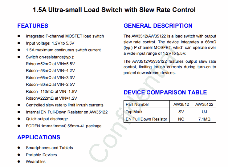 AW35122FDR 1.5A Ultra-small Load Switch