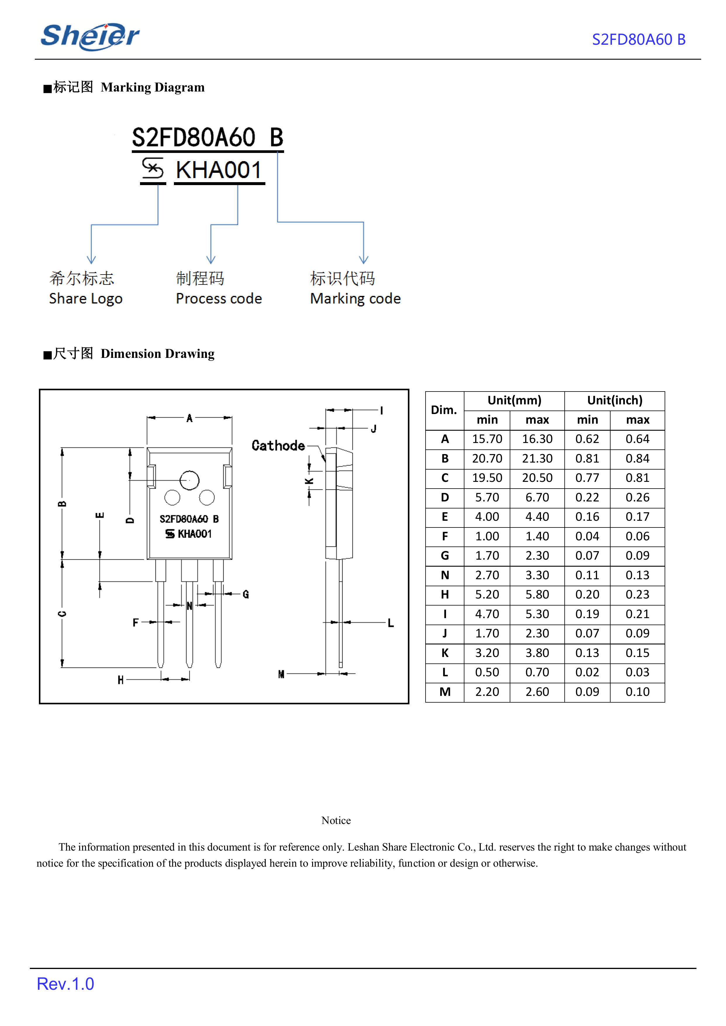 sheier/乐山希尔 全新原厂原装快恢复二极管:S2FD80A60B;正向整流电流:80A;反向峰值电压:600V;反向恢复时间Trr:40ns;正向压降VF:1.8V;封装方式:TO-247AD。通用于电源、电器、适配器、充电器、充电桩、工控、医疗设备、工业特种电源、高频电源、风光储新能源、逆变器、伺服电机马达等产品电路作整流、续流、开关、钳位、防反接、防逆回流等作用。GPP大芯片高电压大电流超快恢复时间整流二极管S2FD80A60B。【页面标价非成交价,请联系详询报价】
