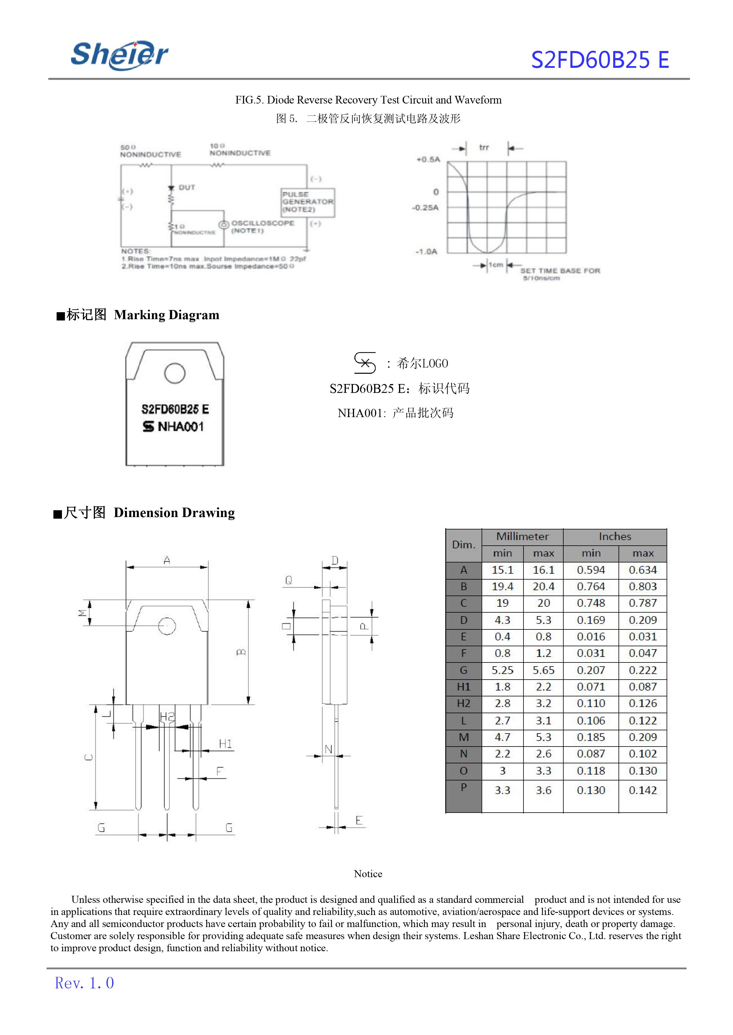 【页面标价非成交价,请联系详询报价】sheier/希尔 全新原厂原装快恢复二极管:S2FD60B25 E;正向整流电流:60A;反向峰值电压:250V;反向恢复时间Trr:48ns;正向压降VF:0.93V;封装方式:TO-3P。