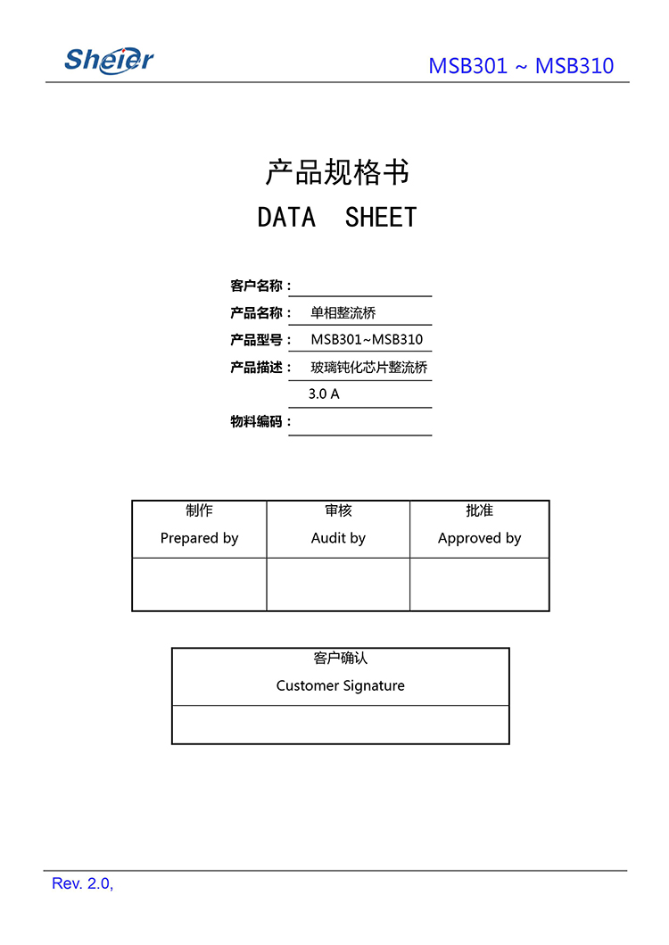 Sheier/乐山希尔 原厂原装全新正品贴片整流桥堆:MSB310、MSB308、MSB306、MSB306;最大正向平均整流电流IF:3A;最大正向峰值抗浪涌电流IFSM:90A;最大反向峰值电压VRRM:1200V~200V;正向管压降VF:1.05V;反向漏电流IR:5ua;工作储存芯片结温:-55℃~150℃;安装封装方式:MSB-4 : 6.9*8.8*1.5mm。