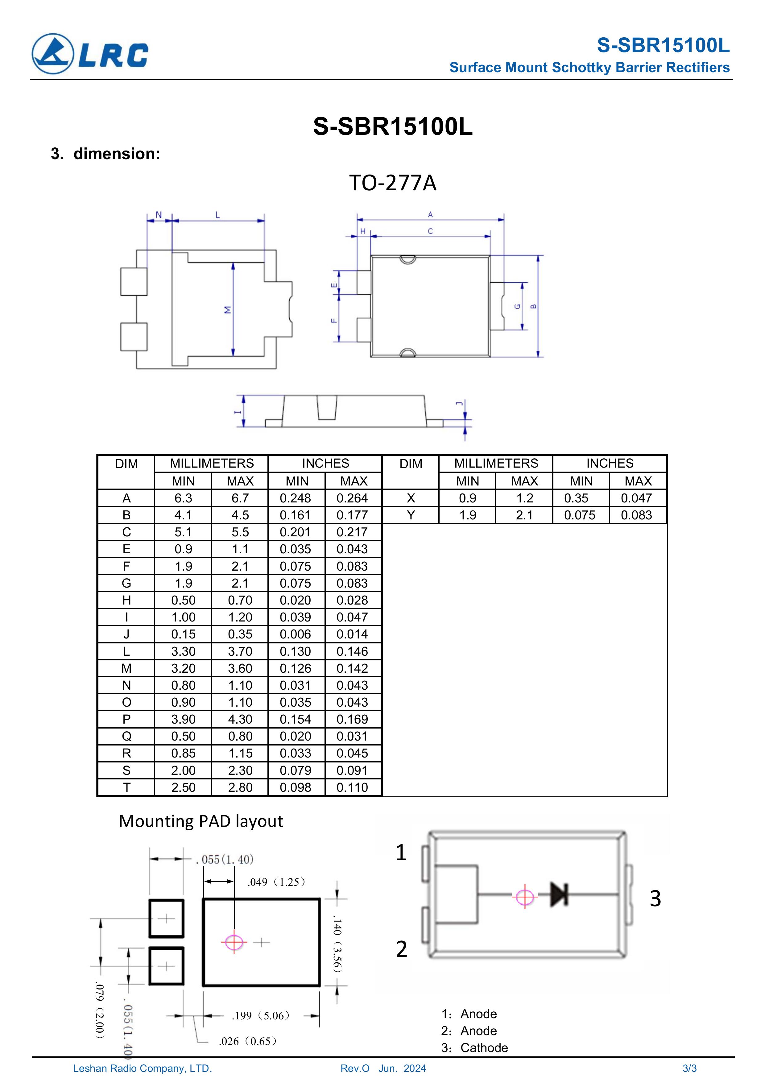 LRC/乐山无线电 S-SBR15100L/S1510L 全新原厂原装高频中低压功率整流管车规级LOW-VF低压降肖特基15A、100V,小体贴片封装车规级低压降肖特基二极管:S-SBR15100L/S1510L;反向耐电压:100V;正向平均电流:15A;正向压降VF:0.7V;反向恢复时间Trr:5ns;芯片结温:-55℃~150℃;封装方式:TO-277;最小包装数量:3000pcs/盘-编带。