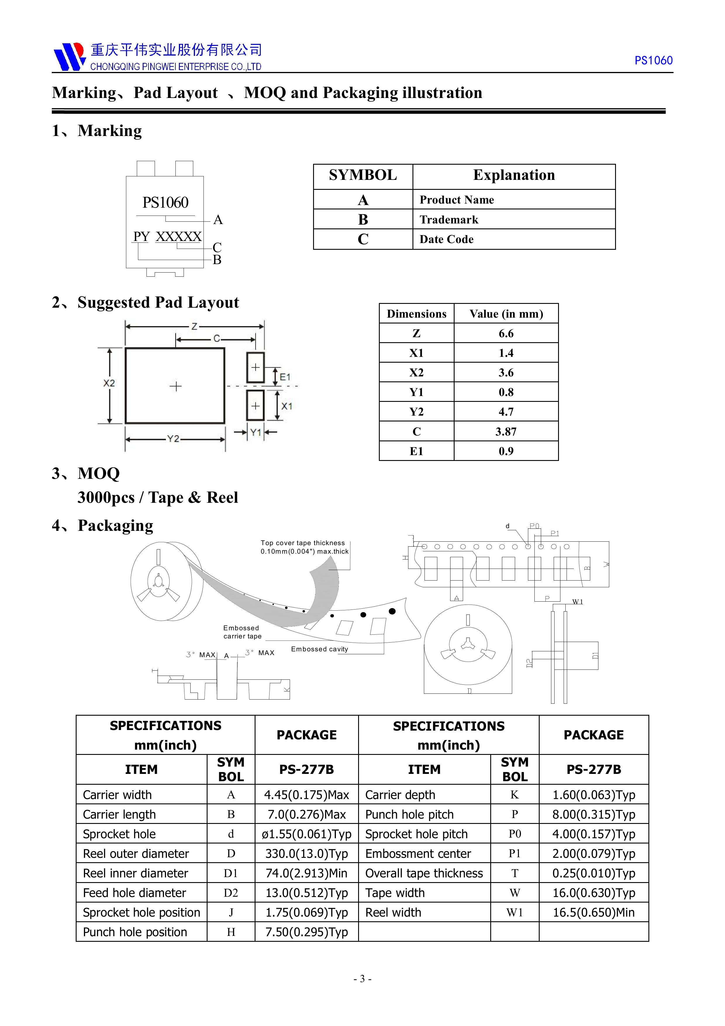 PY/平伟 PS1060 全新原厂原装高频中低压功率整流管LOW-VF低压降肖特基10A、60V,小体贴片封装低压降肖特基二极管:PS1060;反向耐电压:60V;正向平均电流:10A;正向压降VF:0.55V;反向恢复时间Trr:5ns;芯片结温:-55℃~150℃;封装方式:TO-277;最小包装数量:3000pcs/盘-编带。