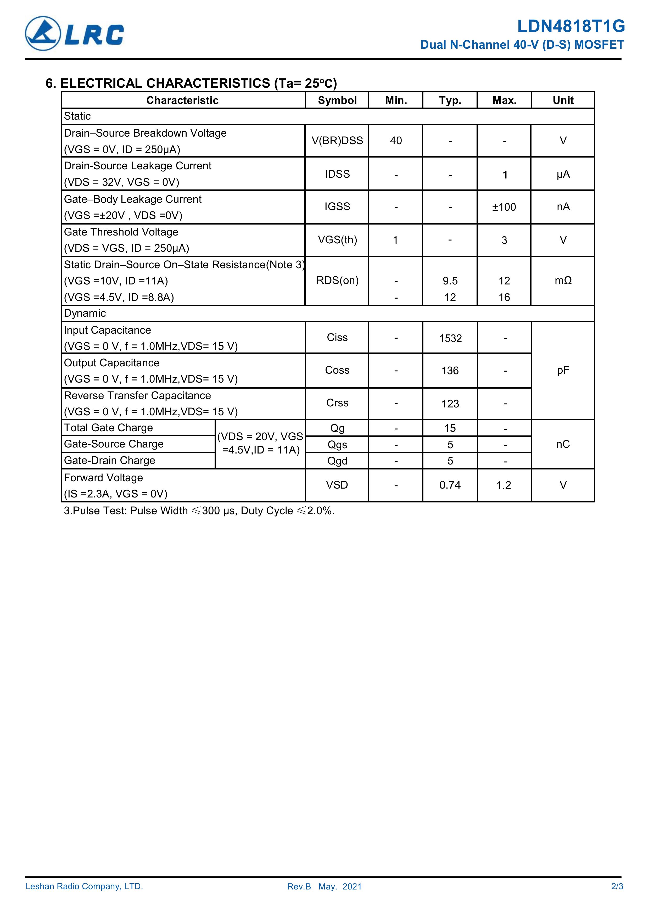 LDN4818T1G/4818 双芯片中低电压大电流低内阻低漏电的分立式功率整流晶体开关管。本品采用内置两颗大尺寸芯片,栅极2、4脚位,源极1、3脚位,漏极5~8脚位,支持多路输入输出贴片式封装,,具有适应中低电压低内阻损耗高频高效恢复快等电气特性特点。通用于电源、小家电、锂电池、马达电机、电动工具、无人机、电器、适配器、充电器、逆变器、充电桩、特种电源、高频电源、风光储新能源、医疗设备、工业工控等产品电路作电子开关、控制、整流、放大、钳位、防反接、防逆回流等作用。
