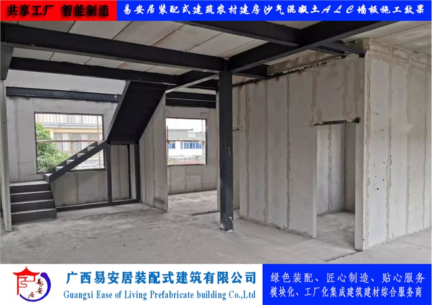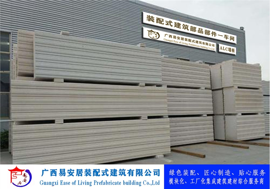 广西易安居装配建筑有限公司生产制造的ALC墙板实现了生产工业化、标准化,安装产业化,具有完善的应用配套体系,配有专用连接件、勾缝剂、修补粉、界面剂等;产品容重轻、强度高、速度快,施工干作,可锯、切、刨、钻。其隔音性、耐火性、抗冻性、抗渗性均有较好的性能效果。其主要参数指标及特点如下:
