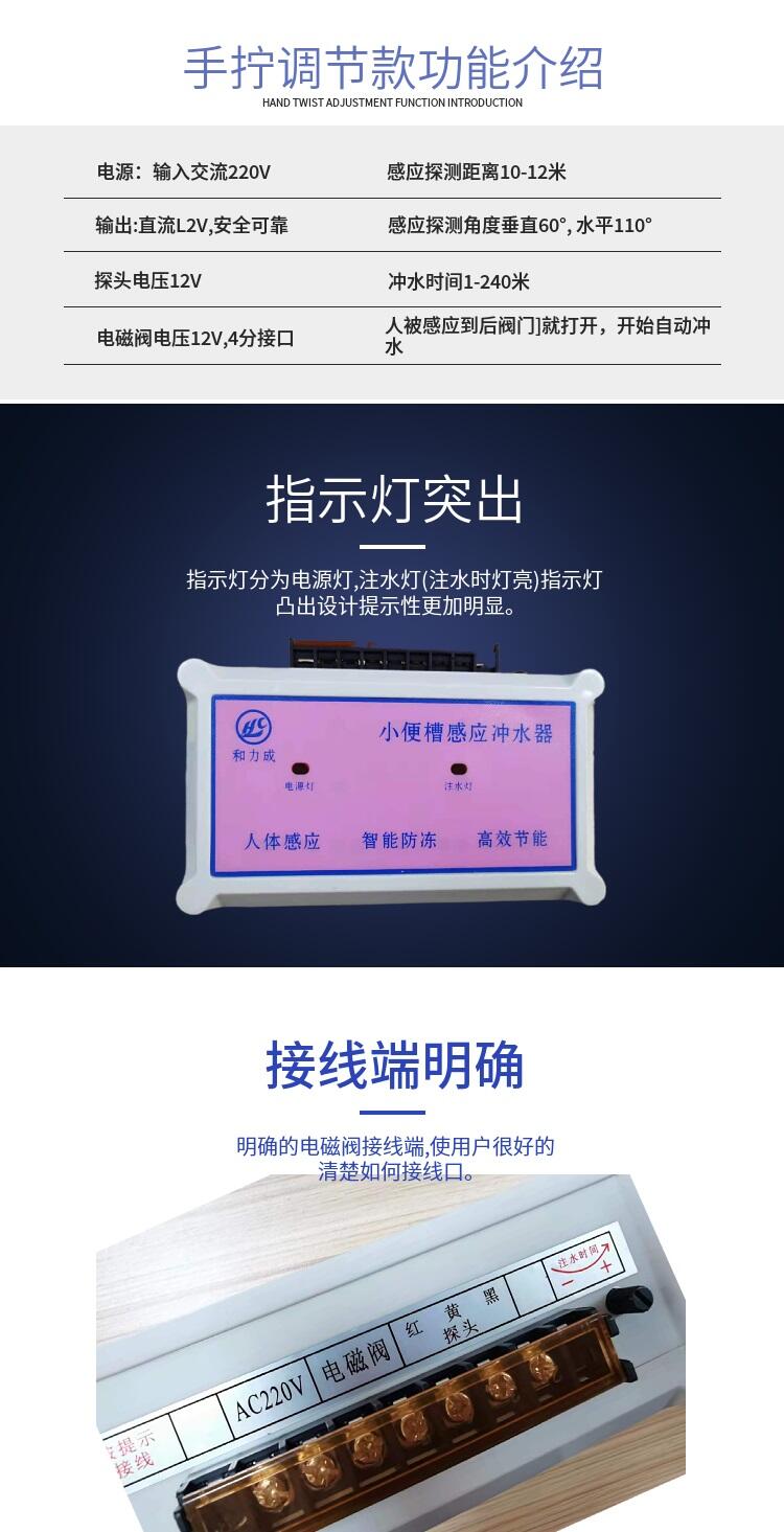 1.自动感应,智能管理:微电脑全自动智能控制,人多多冲,人少少冲,无人不冲。