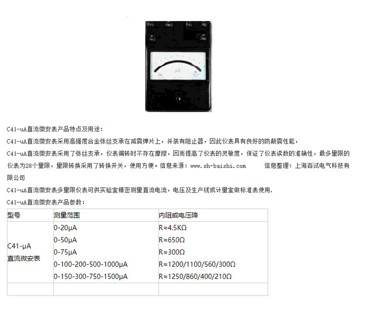 用途 | 供在直流电路中测量电流和电压用 | ||