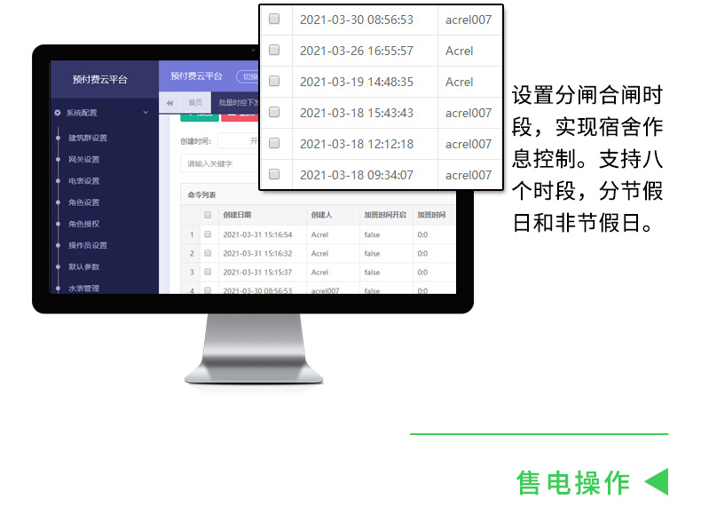 用途 | 水电费收取、作息管理 | ||