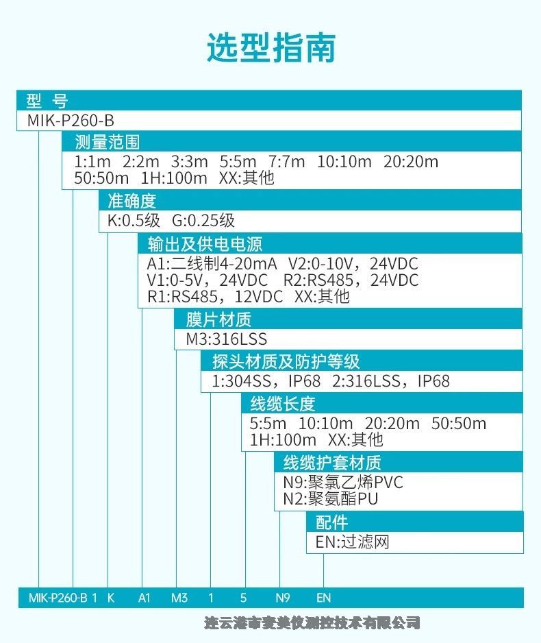 米科MIK-P260投入式液位变送器4-20mA一体式水位计0-5m物位探头