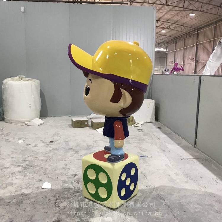 提到卡通人物制作,许多人会觉得是小孩子的玩意。其实近年来已经有越来越多的公司在利用卡通人物传播自己的企业形象。一个活泼、可爱的卡通人物,可以让企业形象更具亲和度。玻璃钢骰子卡通雕塑学校园魔方块公仔造型娃娃玩偶,幼儿园儿童乐园卡通公仔娃娃小女孩人物雕塑模型摆件
