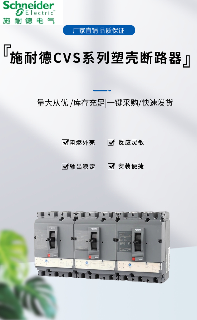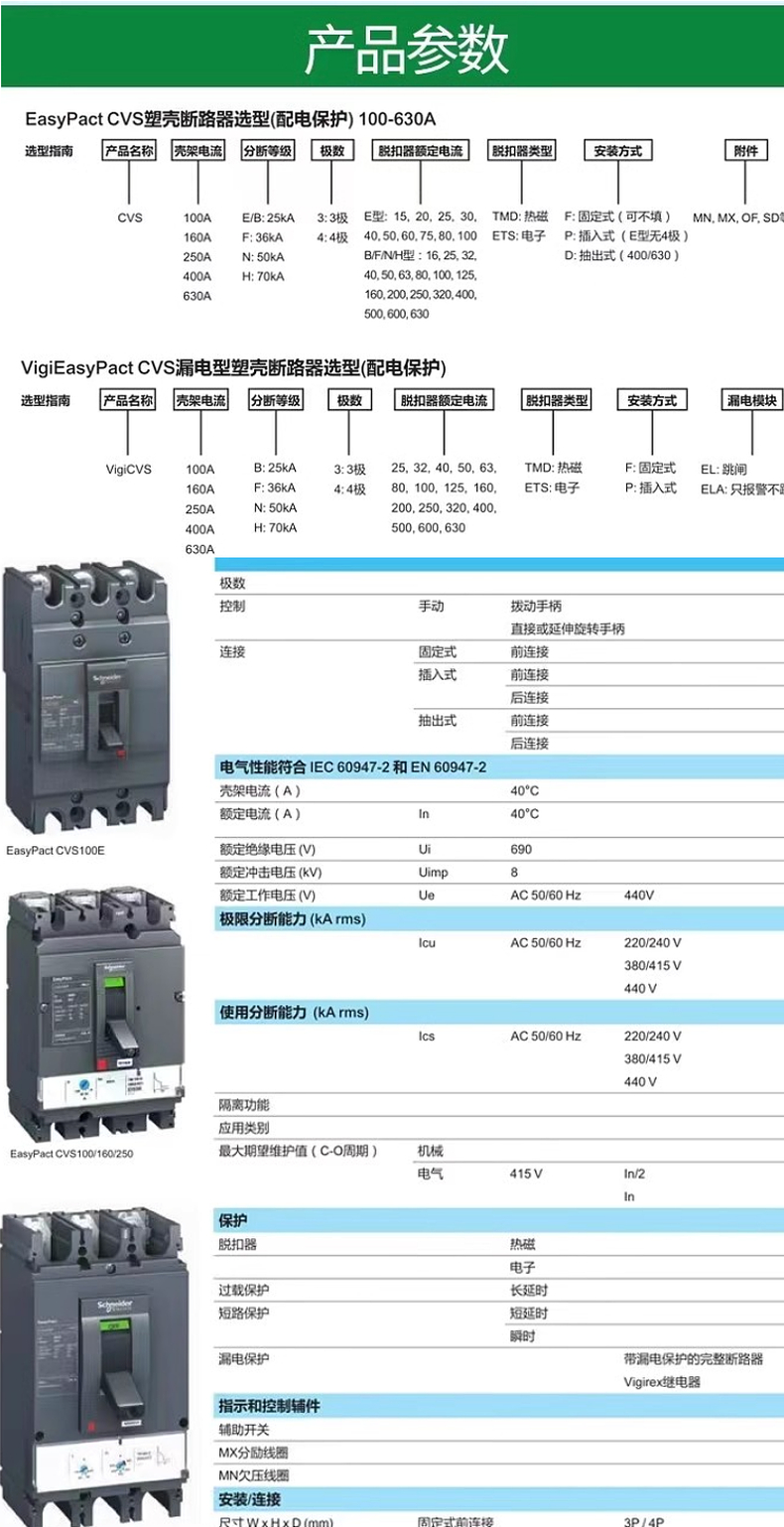 施耐德电气 塑壳配电保护断路器 CVS160N/100N/250N/400N/600N 50KA 型号 | CVS160N/100N/250N/400N/600N | ||