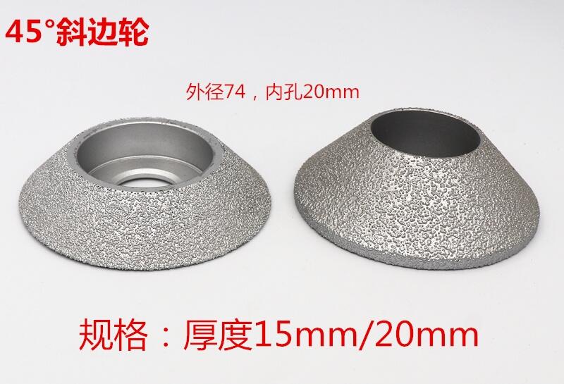 钎焊金刚石手工磨轮主要用于大理石、石英石、陶瓷、地砖等的打磨加工,可以用于开槽,半圆形加工,法国边加工,外径75mm,内孔20mm,可以用于角磨机上。