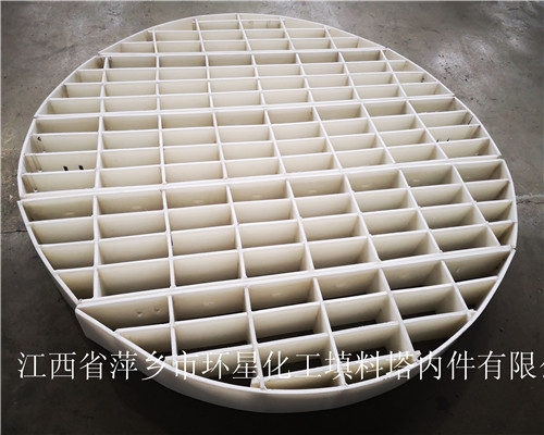 塑料格栅支撑可支撑填料,也可当塑料规整填料用,效率比塑料规整填料高,成本也比塑料规整填料要高点。根据每个塔内情况及公司成本核算综合决定塑料格栅是用于支撑填料作用还是做塑料规整填料用。