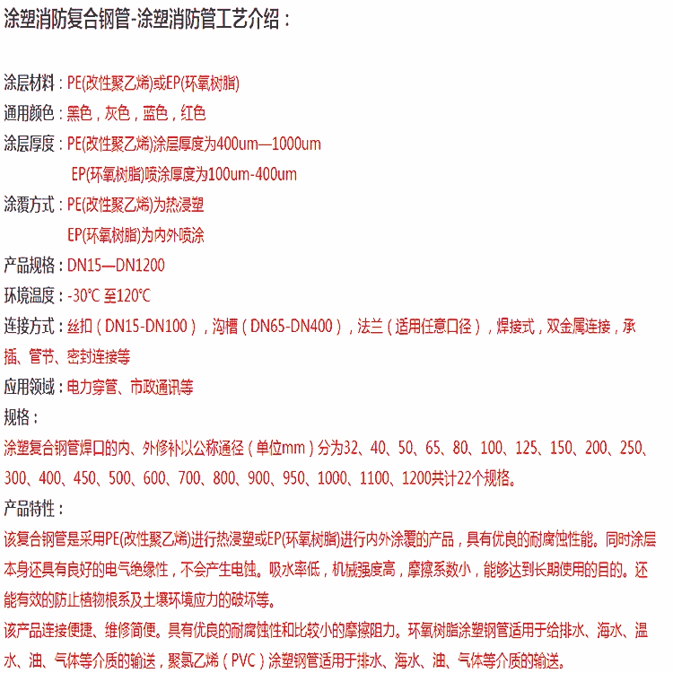 本公司可承担钢质管道(钢管、管件)的单层和双层熔结环氧粉末(FBE)、双层聚乙烯防腐(2PE防腐钢管)和三层聚乙烯防腐(3PE防腐钢管)、双层聚丙烯(2PP防腐钢管)和三层聚丙烯(3PP防腐钢管)、环氧煤沥青钢管防腐、环氧树脂防腐钢管、IPN8710高分子防腐涂料防腐(IPN8710饮用水管道)、水泥砂浆衬里防腐、聚氨酯预制直埋保温管、黑黄夹克保温管、钢套钢保温钢管、预制直埋管件保温防腐等工程。执行SY/T0447-96、GB50268-97、CECS10:89、DIN30670、DIN30671、SY/T0413-2002、SY/T0315-97标准。
