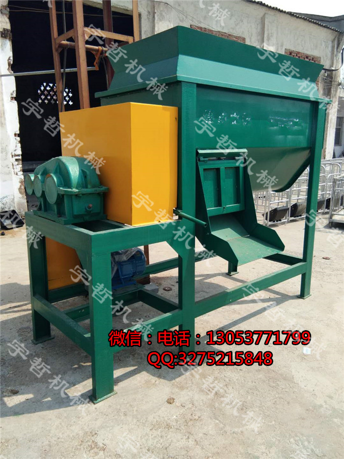 该机由电动三轮车和撒料系统两部分组成,电动三轮车主要从事运输行走及撒料动力,撒料系统是通过主输送和小输送带动完成投喂。