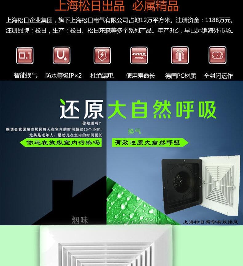 上海松日8寸换气扇格栅式排风扇 吊顶排气扇通风机抽油烟机