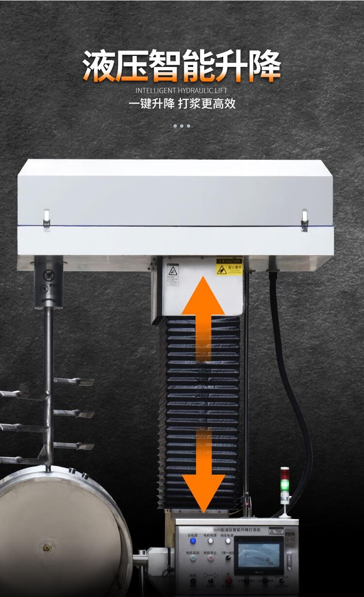 本款400型智能液压升降打浆机,拥有智能变频,精准温控,高效打浆。设备使用优质全铜电机,动力强,效率高,输出稳定。并拥有加厚不锈钢机身,智能温控系统,在超温后自动预警,精密传感器实时温控,保证肉浆新鲜。适用于各种商业场合,例:中央厨房,大型商超,食品加工厂等,给工作增添一份效率。