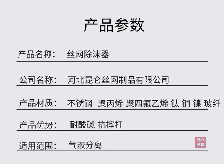 河北昆仑供应丝网除沫器 丝网除雾器 聚丙烯材质