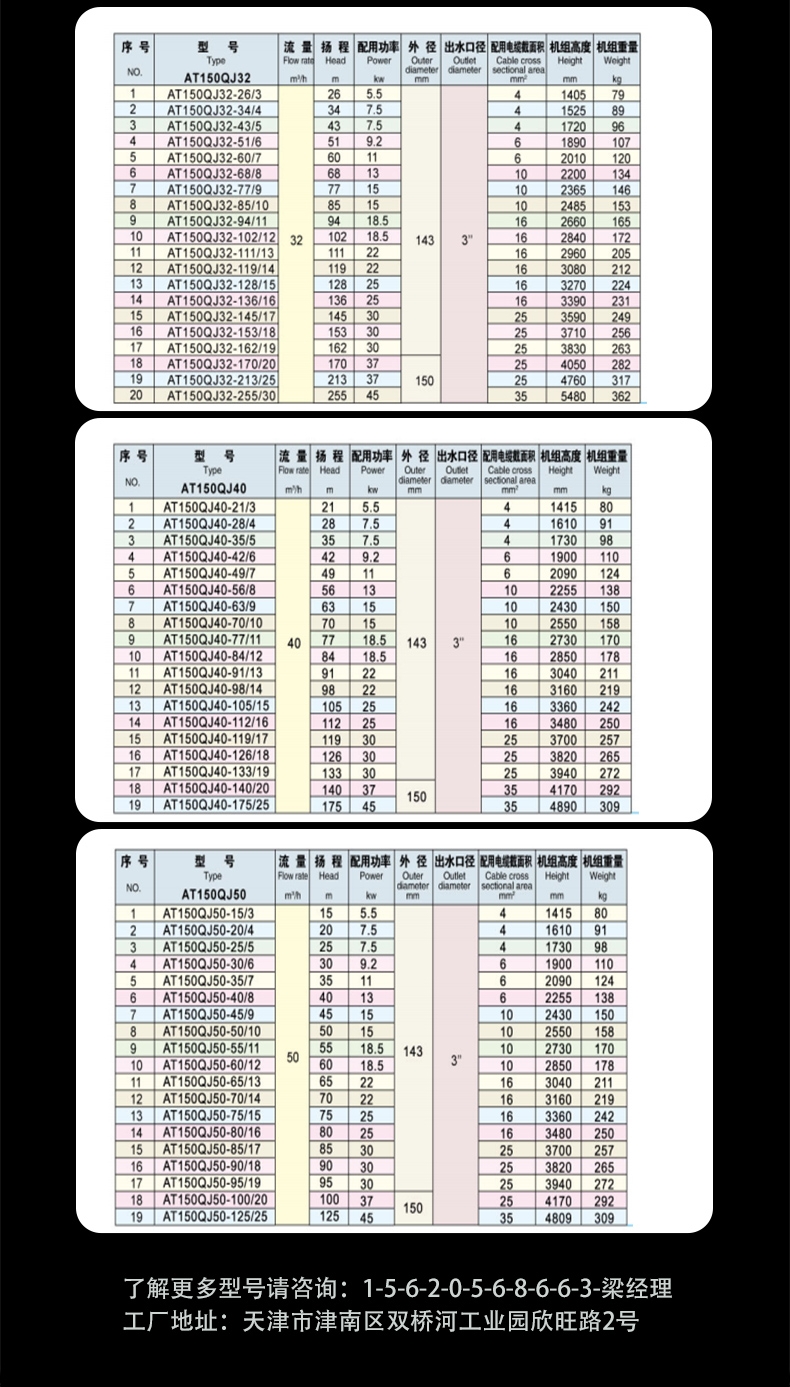 150QJ系列深井潜水泵型号说明