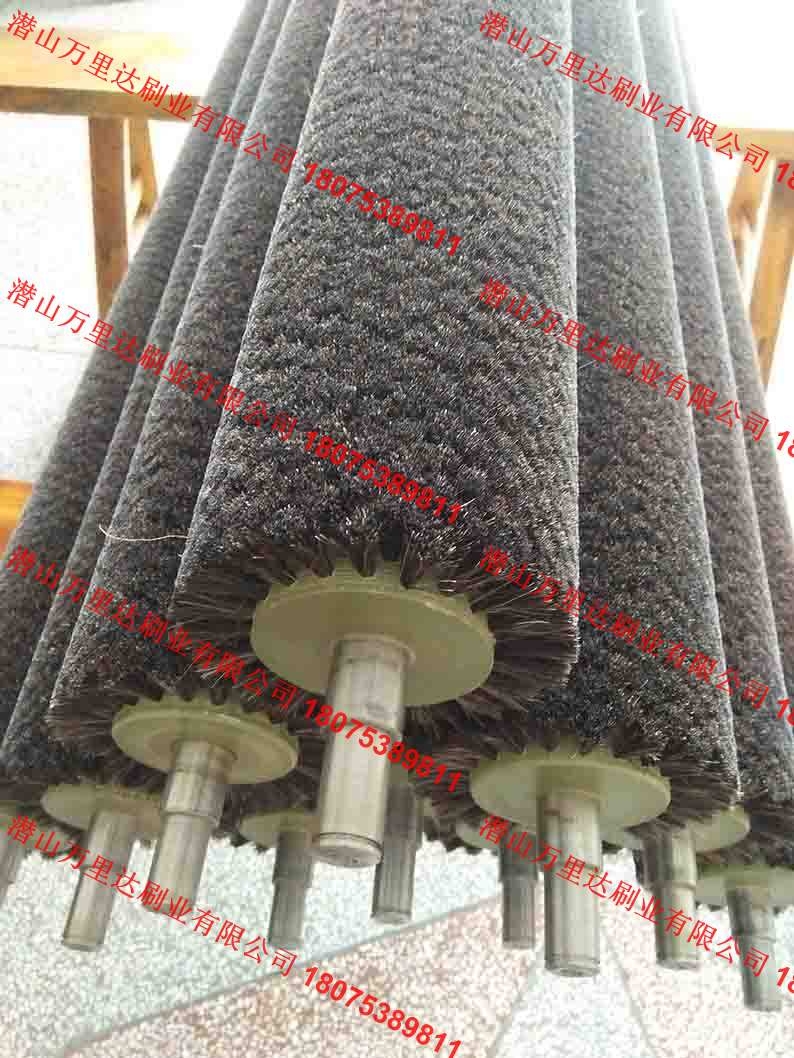 马毛刷辊:在应用效果上比普通毛刷辊更佳,属于毛刷辊二次开发,在耐磨及抗腐蚀方面马毛刷较普通毛刷辊表现得更为突出,通常用来处理皮革、地板、家具等的表面抛光、打蜡、封釉。马尾毛刷辊的制作是将钢轴裁切成合适尺寸,上机床车出毛坯,通过焊接、补强、较直,再经过车床制作出辊芯雏形;然后根据不同要求,分别在辊芯雏形外进行套管或放入模具直接注塑,这样,一条刷辊体的基本形状就已经形成了。