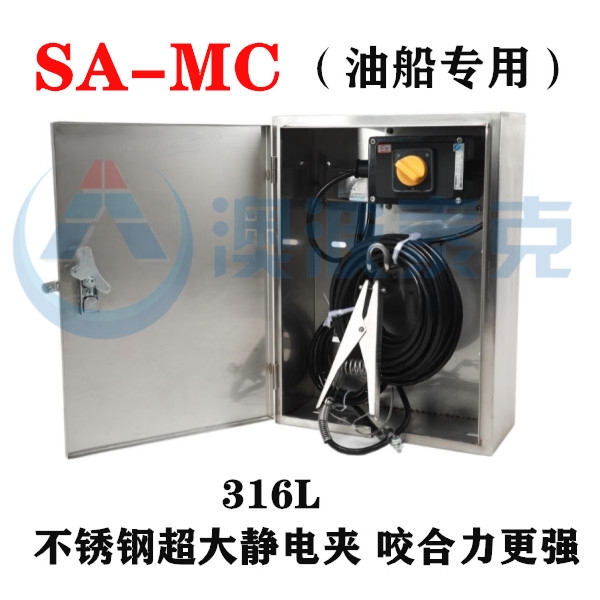 sa-mc(油船专用)型静电接地报警器,专为油船码头接地而设计,针对船体结构复杂和静电量较大的特殊情况,在电路中加入抗干扰设计,能避免电磁干扰产生的误报警现象;同时增加防爆开关,保证静电夹破漆针在接触船体瞬间不会产生火花,使用安全可靠。