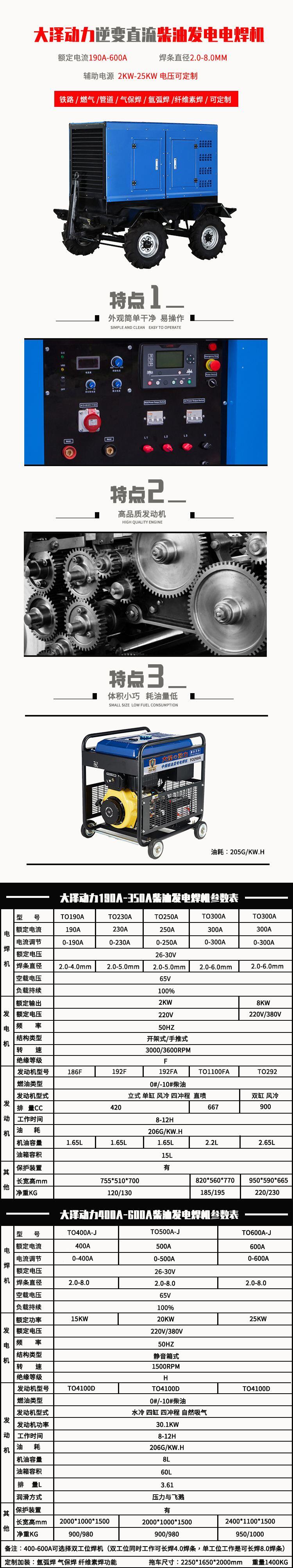性能稳定、操作简便、维护方便、低噪音、方便的外部加油加水系统等诸多特点满足。1.省油:优良的燃烧效率产生极高的经济效益。焊接方便、安全 宁静:无论何时无论何处都能使用的它。可以达到24小时不停的工作。可靠:稳定的自动电压调节系统和焊接的保护装置。令人放心使用。大泽动力电力公司租赁销售价格合理。大泽动力整合了从生产到销售的每个环节,从技术研发到生产加工,从产品存储,到物流运动再到门店销售每一个程序都严格管理进行操控与控制,正是有了这样的整体解决方案.