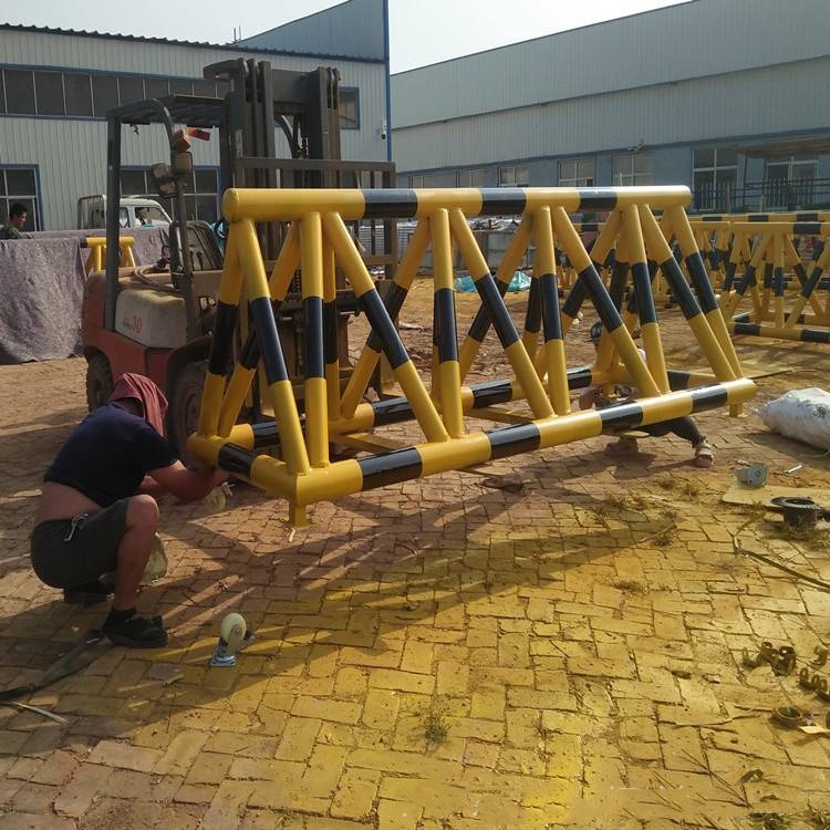 拒马护栏是用于道路的专业产品,拒马护栏的结构简单,设计清晰新颖,运输方便,安装方便,拒马护栏是管道经过电焊进行焊接, 管的尺寸和厚度不同,价格也不同。管越厚,使用时间也越长。也有镀锌管防腐性能好,它不容易生锈, 而且金属表面处理的也很精致拒马主要用在大型环境用于控制人群通道,隔离人群或者保护重要人物的场合。铁马充当临时护栏的作用,移动方便, 与旧时铁马护栏相比,新型的铁马护栏防撞放推倒,牢固性较强拒马护栏是一种用型钢焊接而成的可移动障碍器材,其表面经人工打磨后喷上黑色油漆,底面带刹车万向轮, 可快速分布移动式筑城障碍物。它具有较好的整体强度和抗冲击力以及防攀越,防拆卸,防破坏能力,且制作简单,运输方便,不破坏地面,设置迅速等特点。 拒马护栏一般适用道路路口,安检大门,学校门口, 临时隔离通道等。设置在展会, 学校等门口安装“拒马防撞护栏