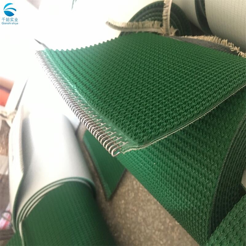 上海墨绿色草坪花纹输送带定做 波浪草纹PVC传送带定制加工