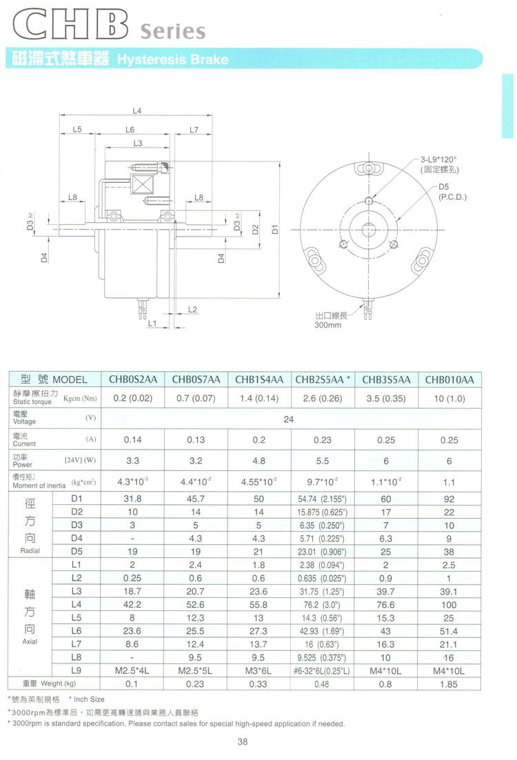 配件编号 | CHB磁滞式刹车器 | ||