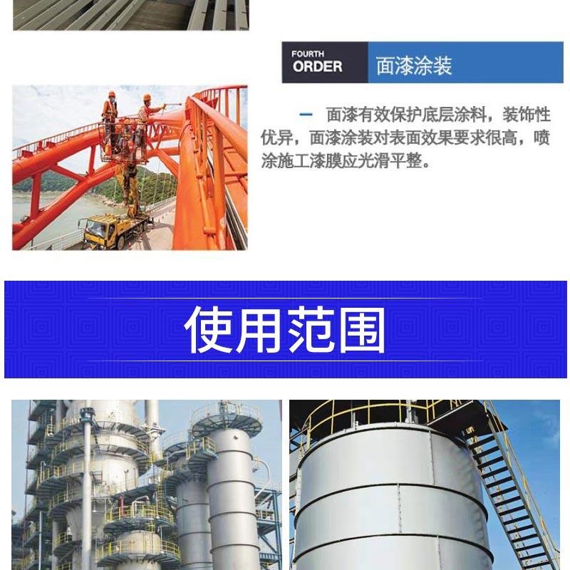 4、涂刷对象:涂料可涂刷在各种无机材质上,如:钢铁、混凝土、 玻璃、陶瓷等。如需在表面为有机材质的基体上涂刷,此表面上需提前处理。