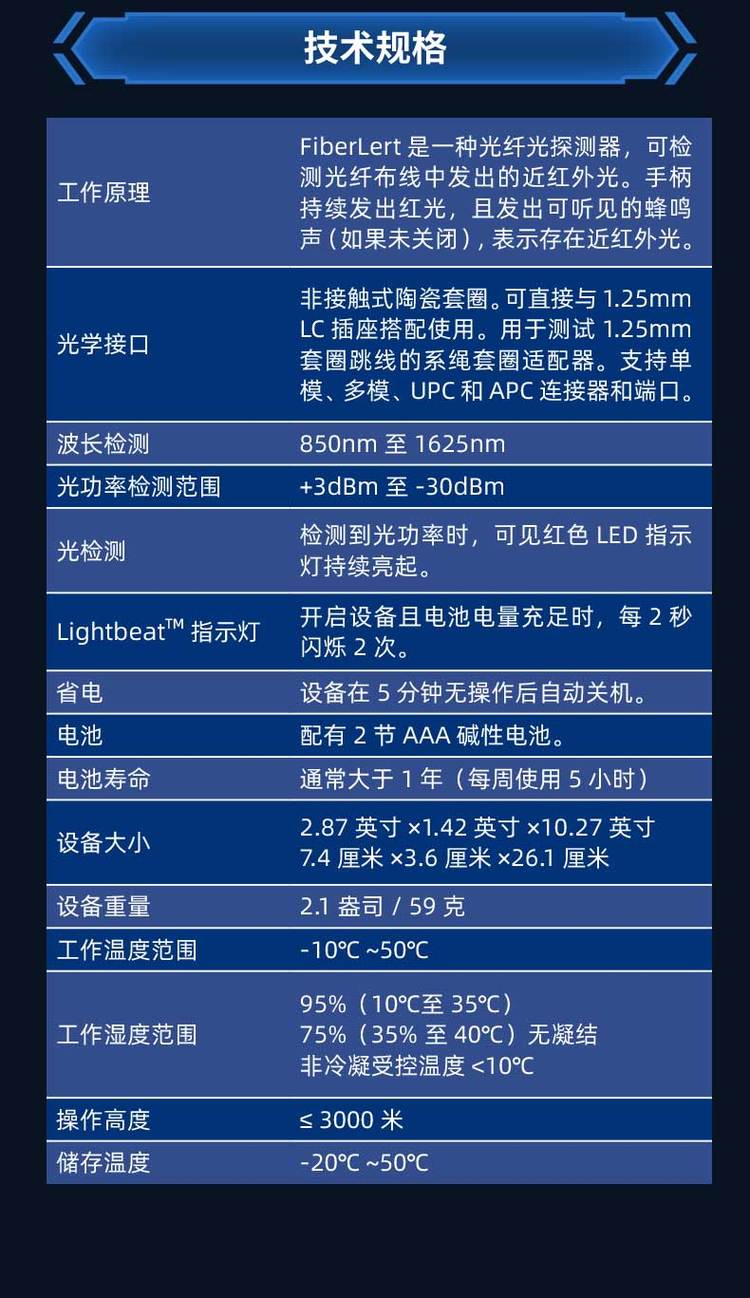 用途 | 诊断和排除光纤、端口、极性和光模块故障 |