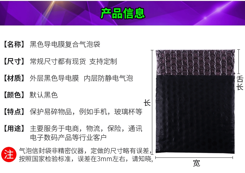 导电膜气泡信封袋 永久防静电气泡袋