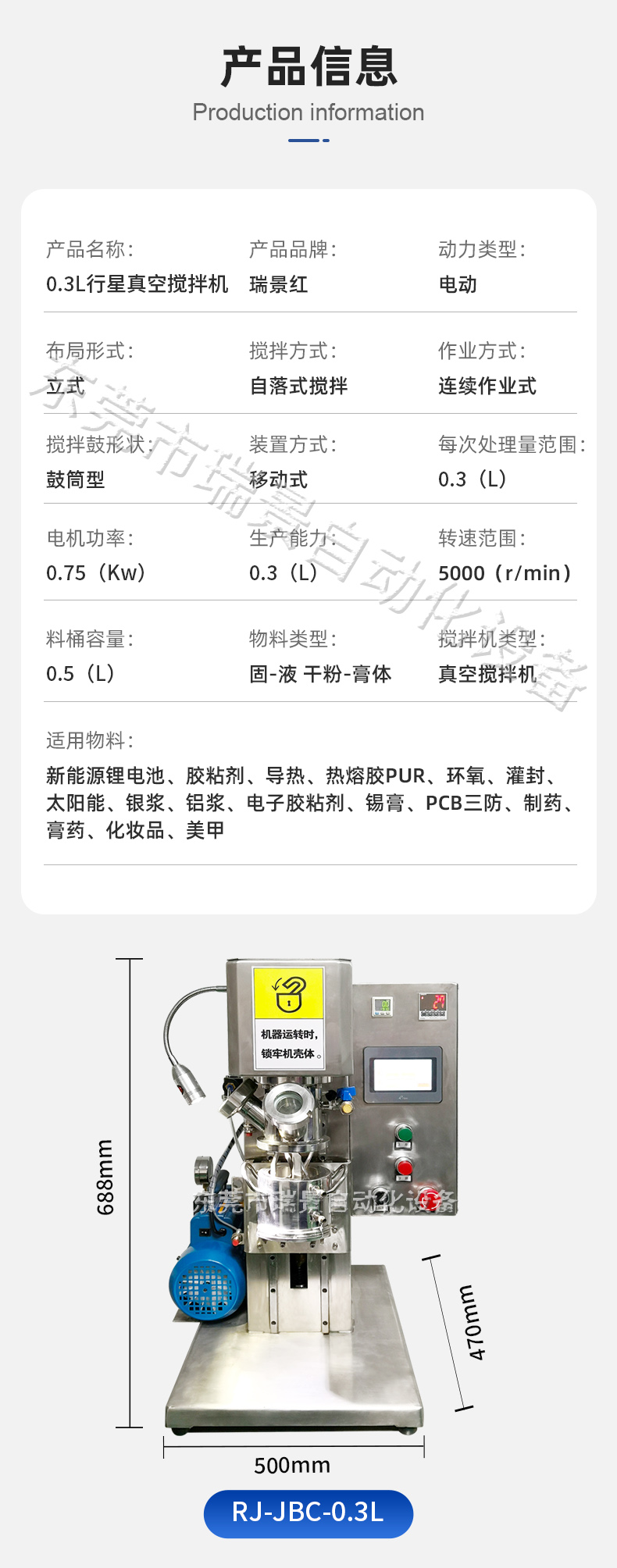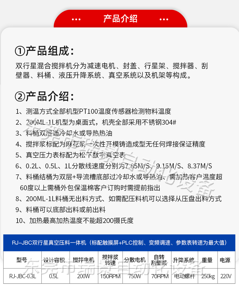 规格 | 0.3L行星真空搅拌机定金 | ||