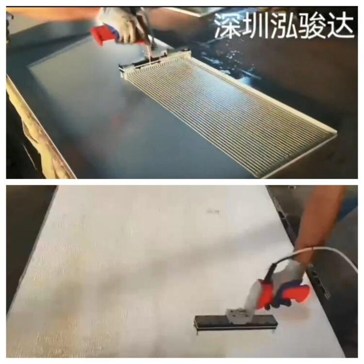 净化板,手工板,蜂窝板,橱柜板手持淋胶机,可淋板宽1.22m(手持淋胶头再弯腰,可伸长的长度在1.25m左右,以致影响了淋胶板宽,这是手持淋胶机的缺陷,但其优点是投入成本低,操作便利,产品适应性强),效率高,一个人可以顶三个人,不仅减少胶水浪费,还能保证车间整洁。