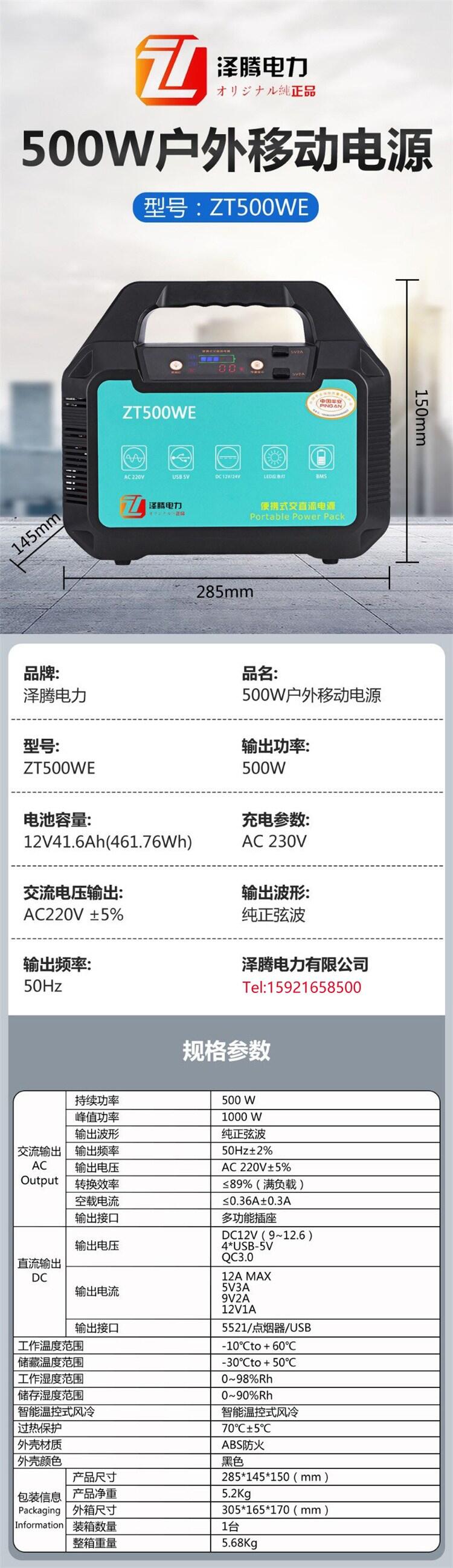 泽腾电力 500W 户外电源 应急