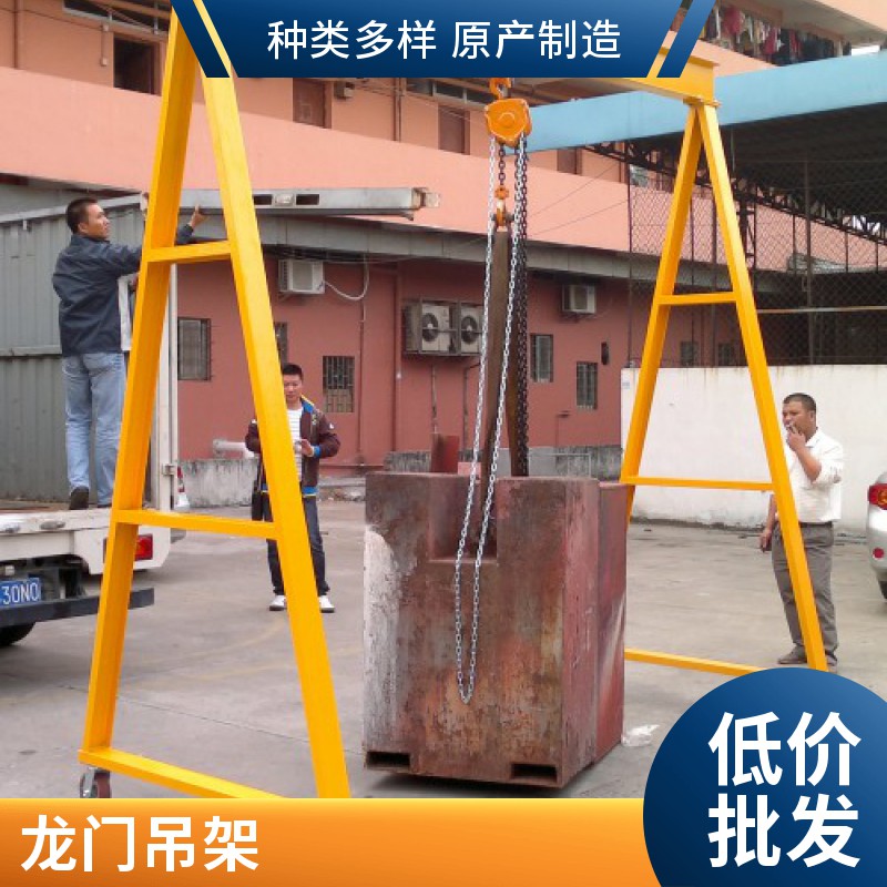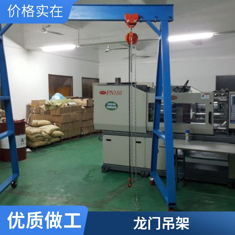 吊模架适用于制造模具、汽修工厂、矿山、工地及需要起重场合。该移动龙门架大的优点是可移动性,可快速拆卸安装,占地面积小,用微型汽车就可转移到另一个场地安装使用。起重小龙门架主要有二种规格:1.在地面上移动的龙门架,带刹车承重轮可在地面上移动,适合在地面上起吊物品;2.用钢轨固定安装在楼板面或梁上,通过电动或人力葫芦,实现起重机械化。可减少人力,降低生产运营成本,提高工作效率。